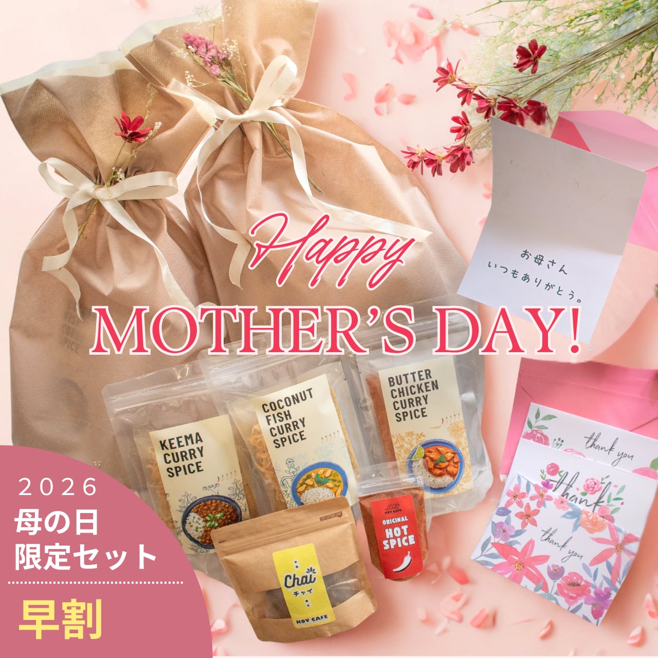 【早割・送料無料】母の日限定 3種の簡単絶品カレー&選べるもう1品ギフトセット|メッセージカード・ドライフラワーラッピング付